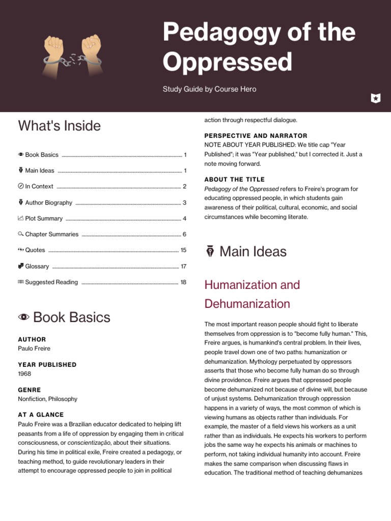 Summary Of Pedagogy Of The Oppressed Summaries Pedagogy Docsity